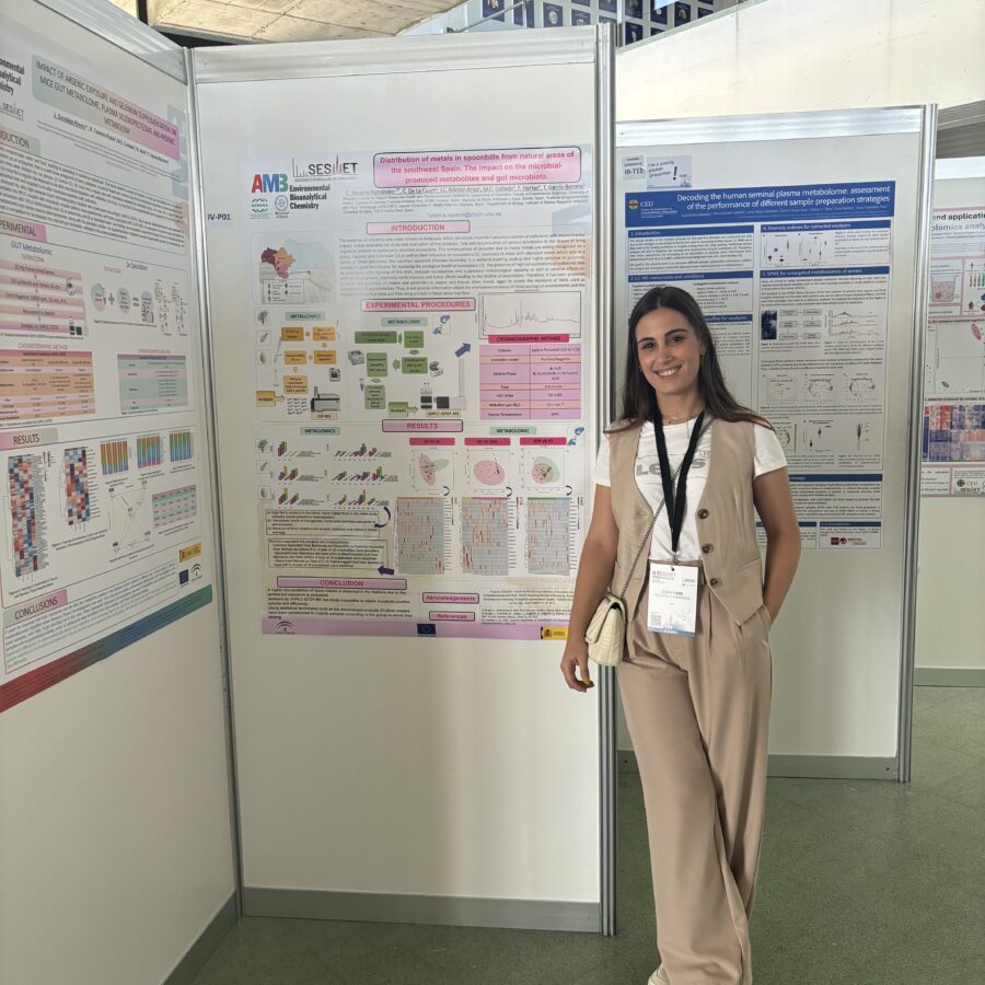 Además, he presentado comunicaciones en congresos nacionales e internacionales (SETAC y SESMET, 2024) y colaboro activamente en actividades de divulgación científica como la Noche Europea de los Investigadores y la Semana de la Ciencia.